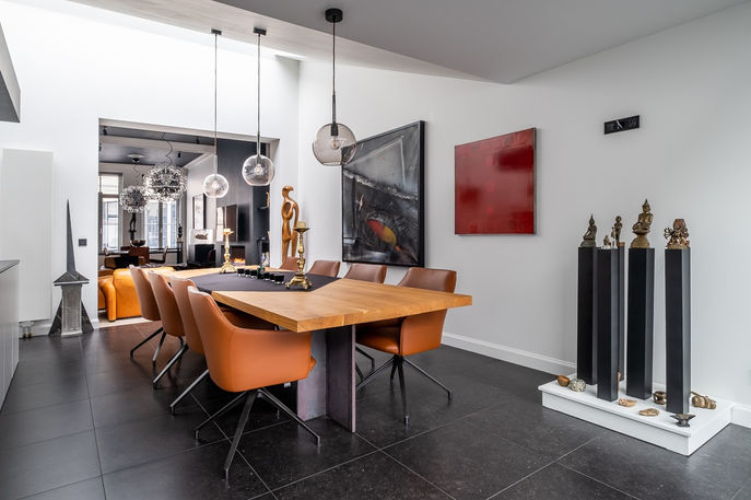 Dit prachtig herenhuis namen we onder handen voor een luuxueuze renovatie. Daarvoor werkten we in nauw overleg samen met de interieurarchitect van de klant. Op basis van de plannen werden onder andere de bar, haardwand, keuken, badkamer, wanden en plafonds in een nieuw jasje gestopt.