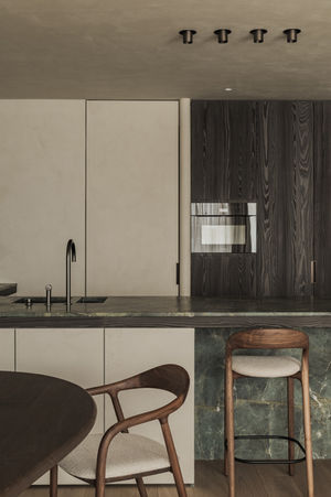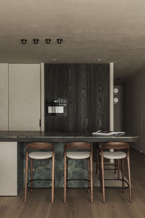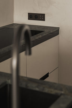In project Kno werd een casco appartement omgevormd tot een serene leefomgeving, afgewerkt met duurzame materialen van het hoogste niveau. De keuken, tv-kast, het stapelbed en de kasten in de slaapkamers werden allen uitgevoerd in hoogwaardig gezandstraald lariks, wat zorgt voor een warme, verfijnde en tijdloze uitstraling.